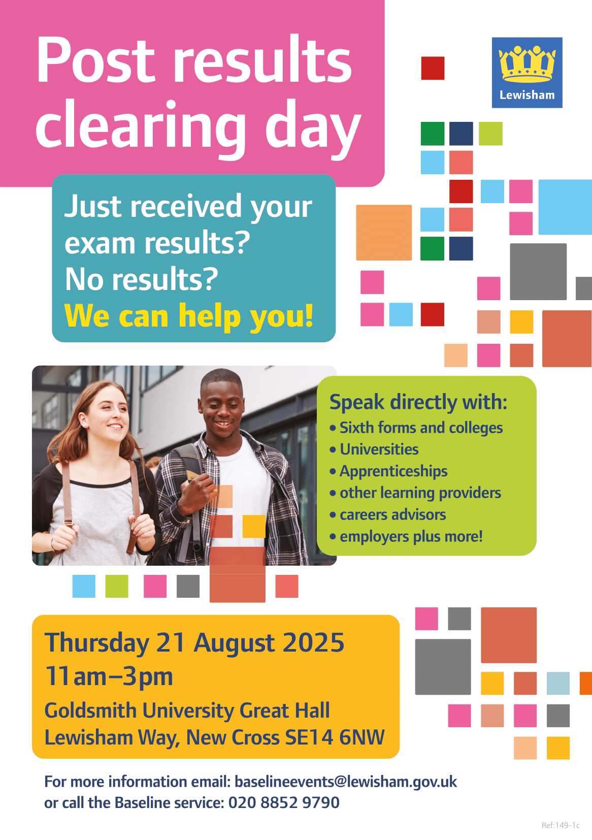Thursday 21st August 2025 11am – 3pm for the GCSE, BTEC and A level cohort & those who are NEET.